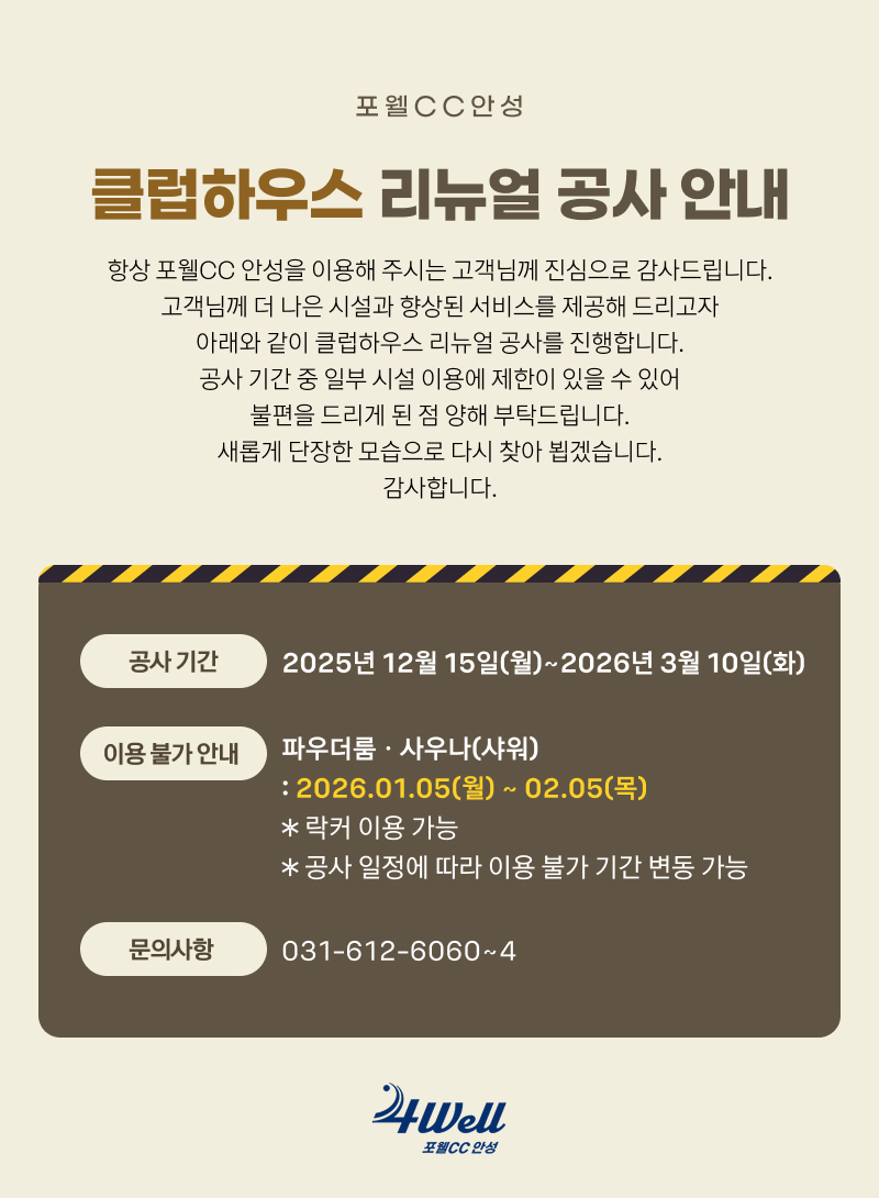 클럽하우스 리뉴얼 공사 안내