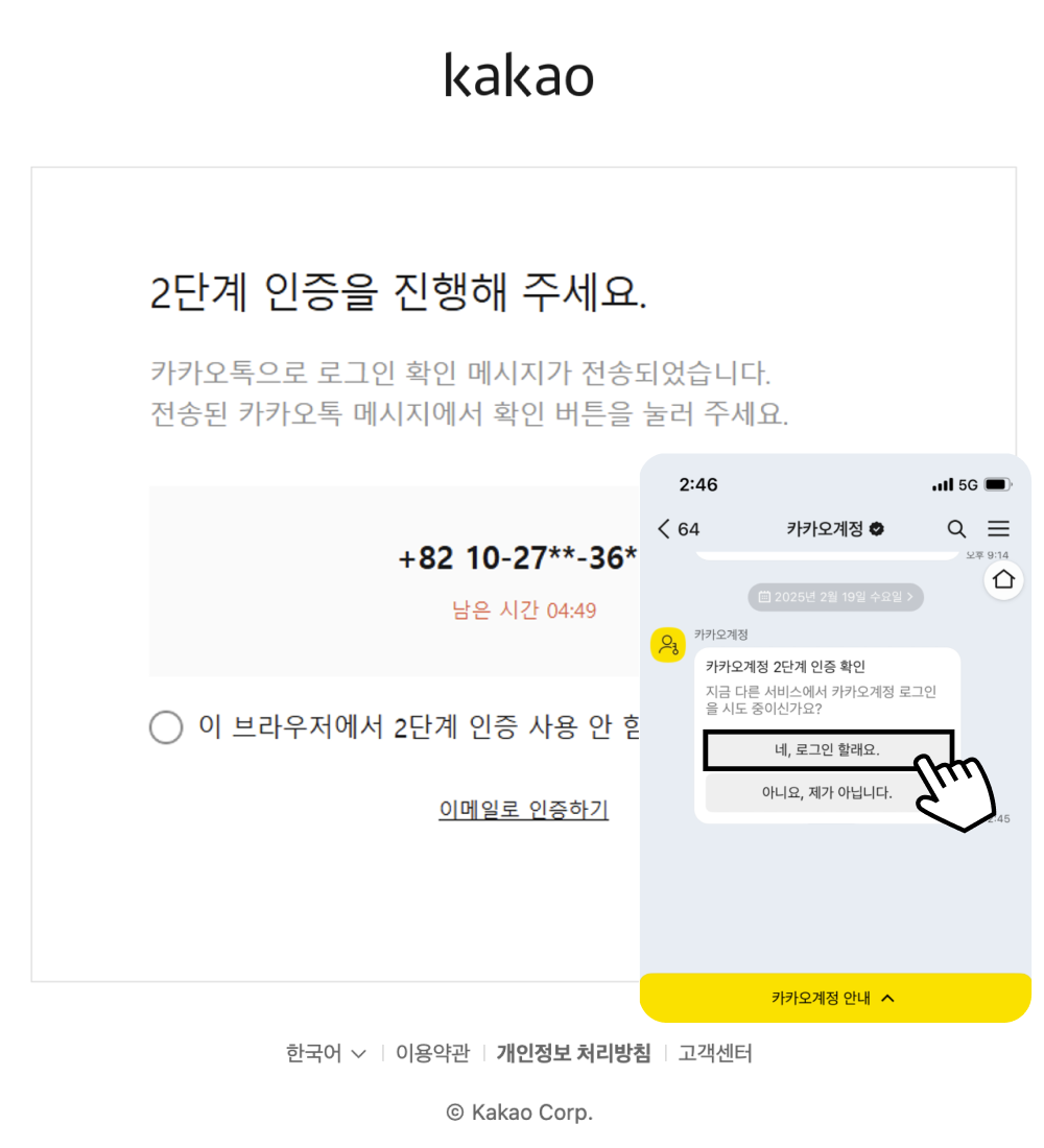 3카카오계정 2단계 인증 ‘네, 로그인 할래요.‘ 클릭